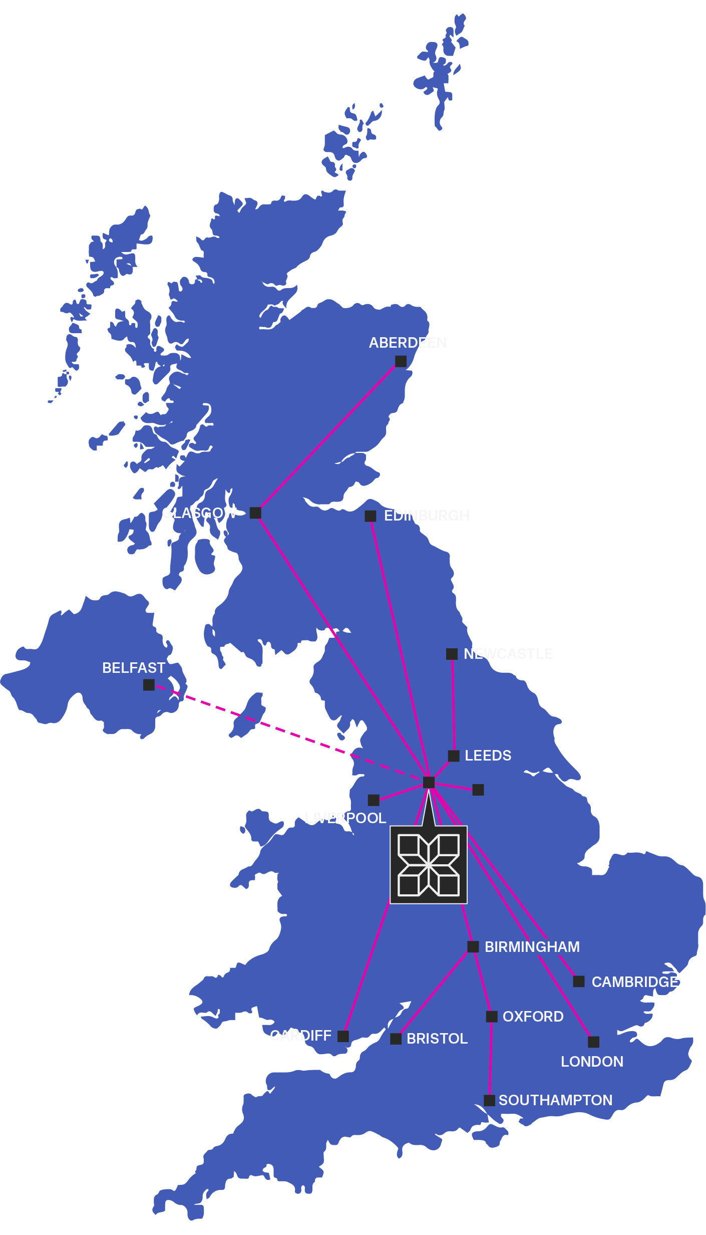UK MAP SHOWING NATIONWIDE CONNECTIONS